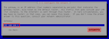 20. Masukkan gateaway sesuai dengan yang kalian cek tadi dan masukkan name server address.